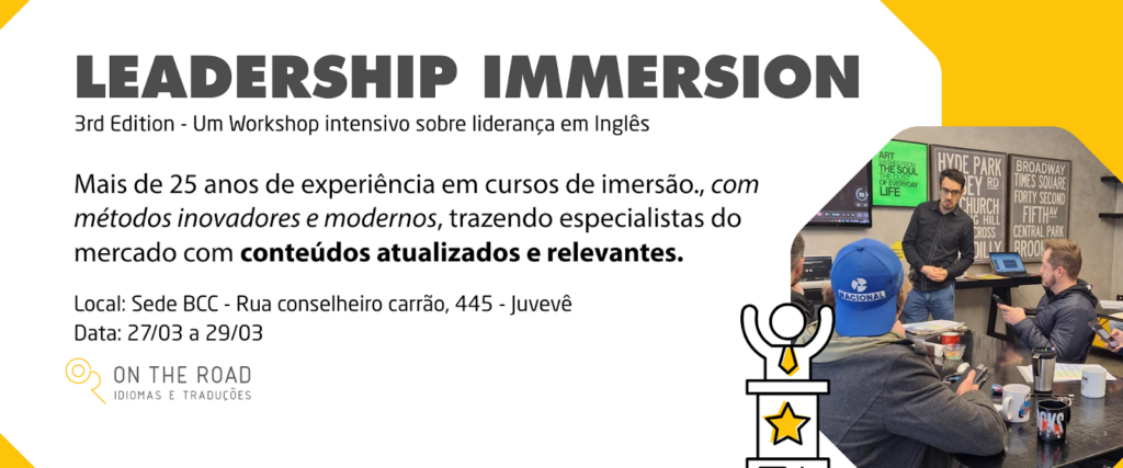 Para alavancar seu inglês neste novo ano, a On the Road Idiomas & Business Communication Center trazem três super intensivos. Assim você pode escolher dar um up na carreira, melhorar sua fluência ou praticar sua conversação conosco. Tudo isso no precinho, com os melhores professores da cidade e num ambiente onde todos falam inglês o tempo todo. Com mais de 30 anos de experiência, temos o curso ideal pra você!